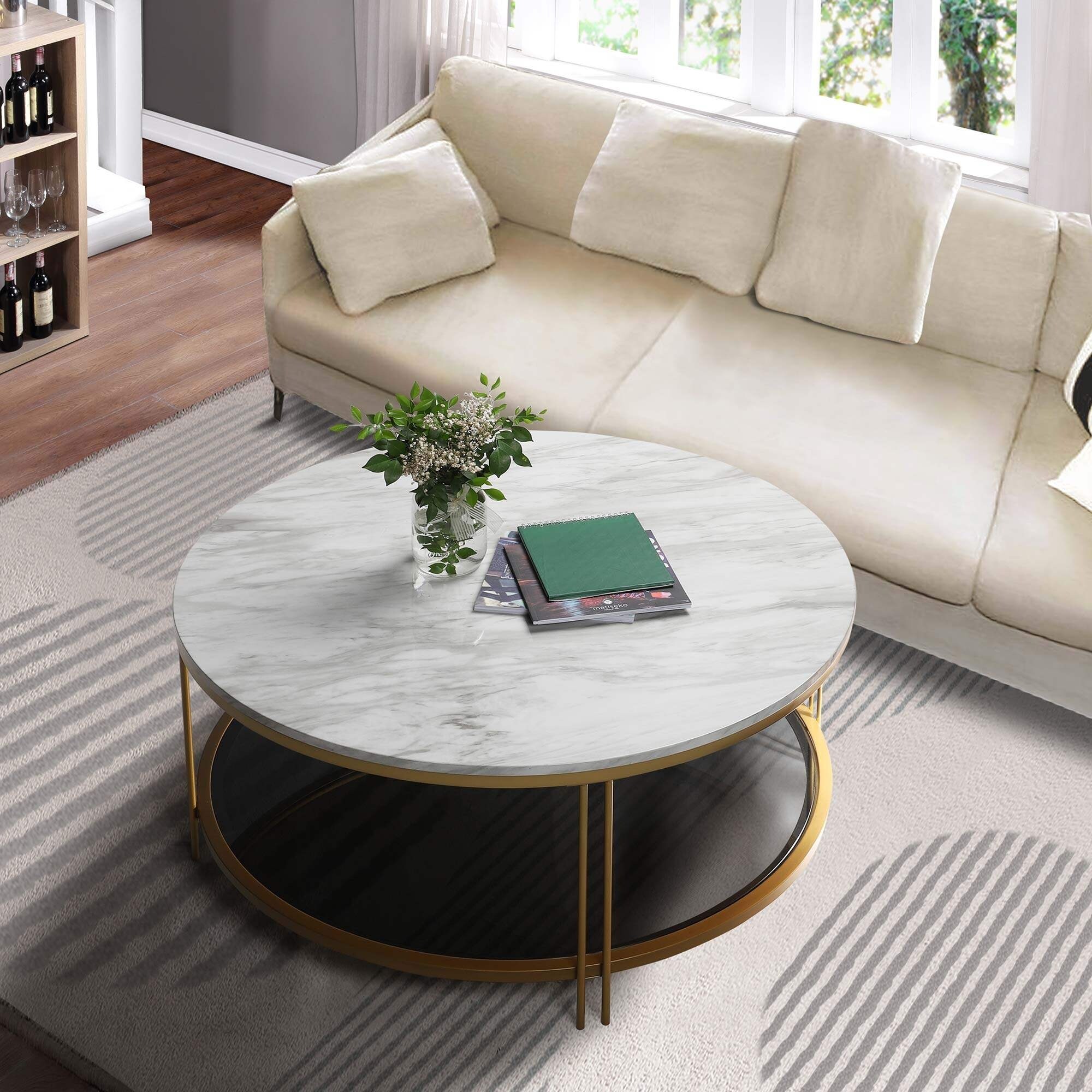 Home Decorators Collection Cheval Gold Metal Nesting Coffee Tables With Marble Top Marble Coffee Table Set Marble Round Coffee Table Round Metal Coffee Table